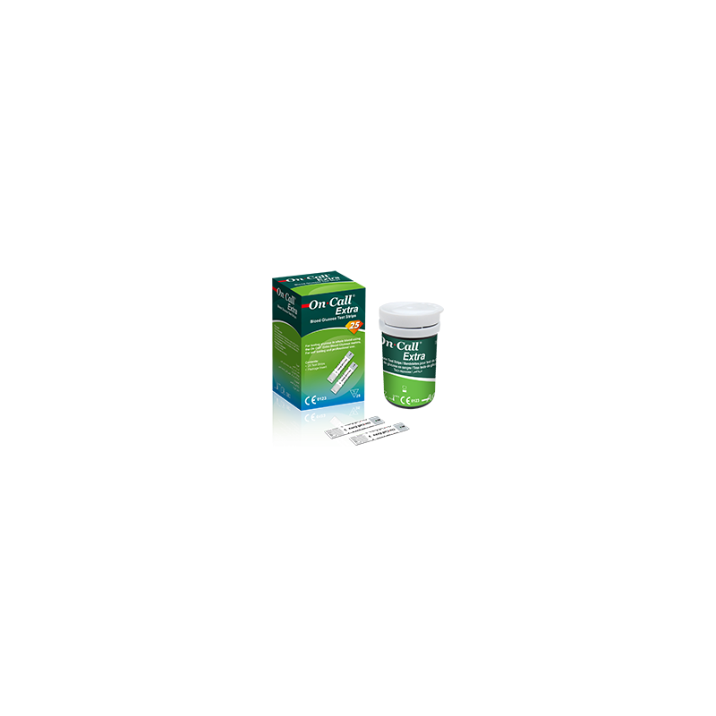 Ils fonctionnent avec le glucomètre On Call Extra. Ensemble, ils mesurent la concentration de glucose dans le sang total.